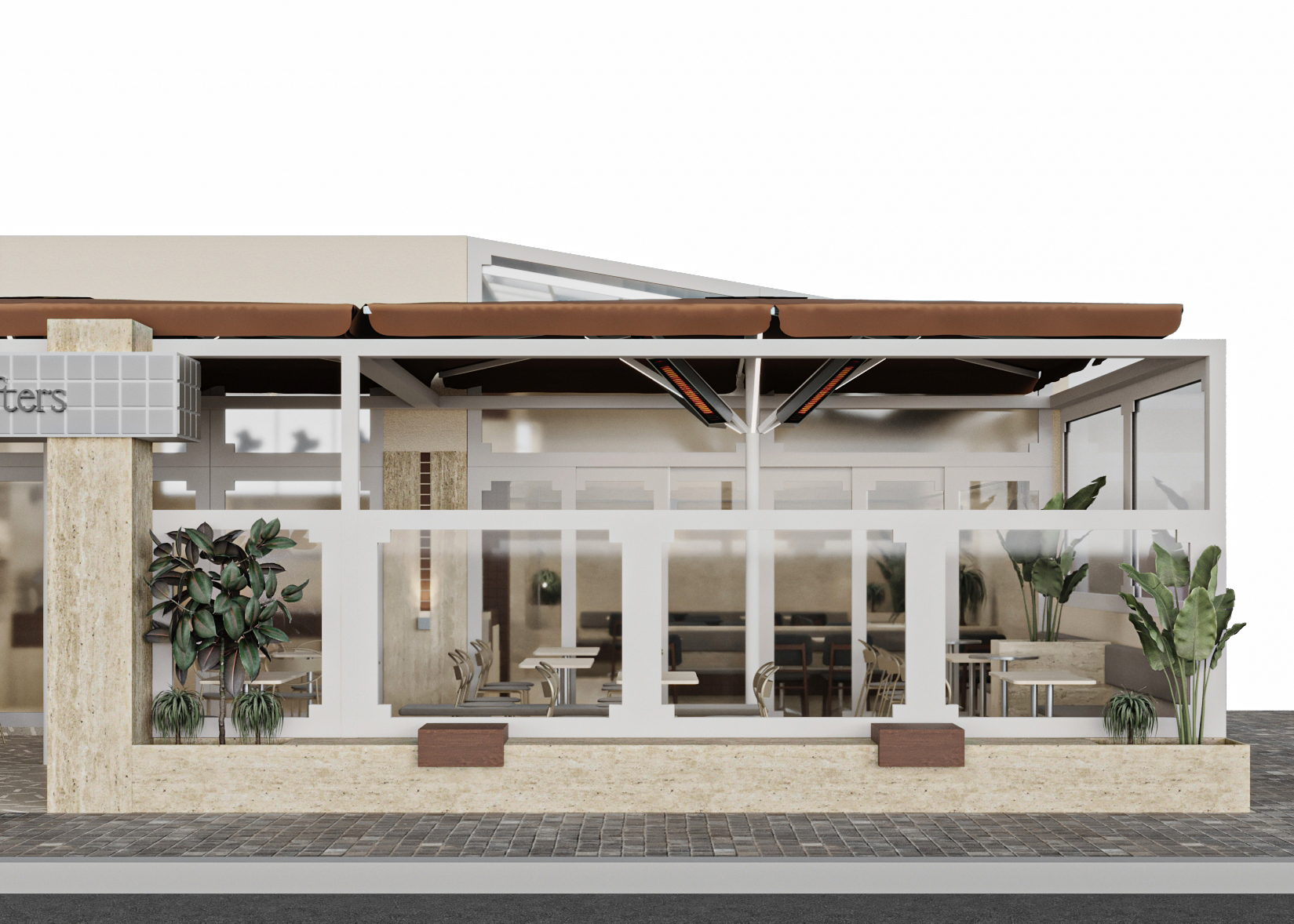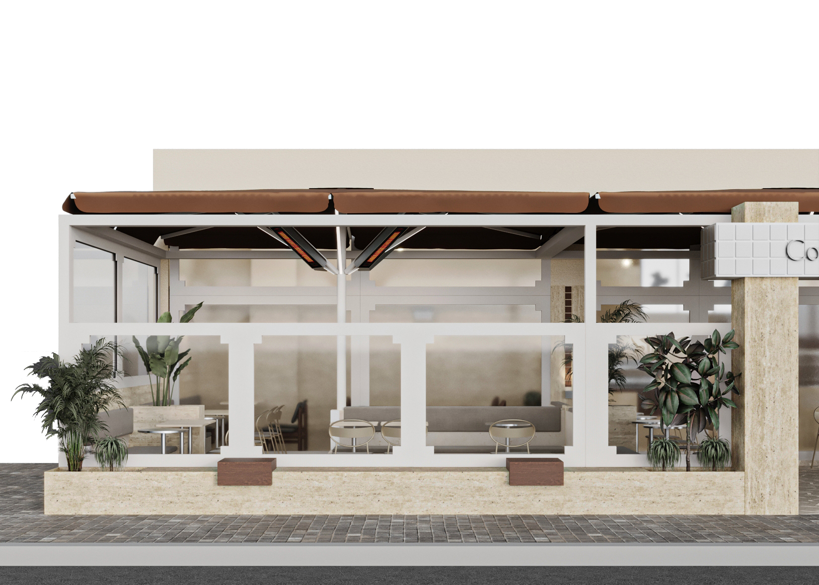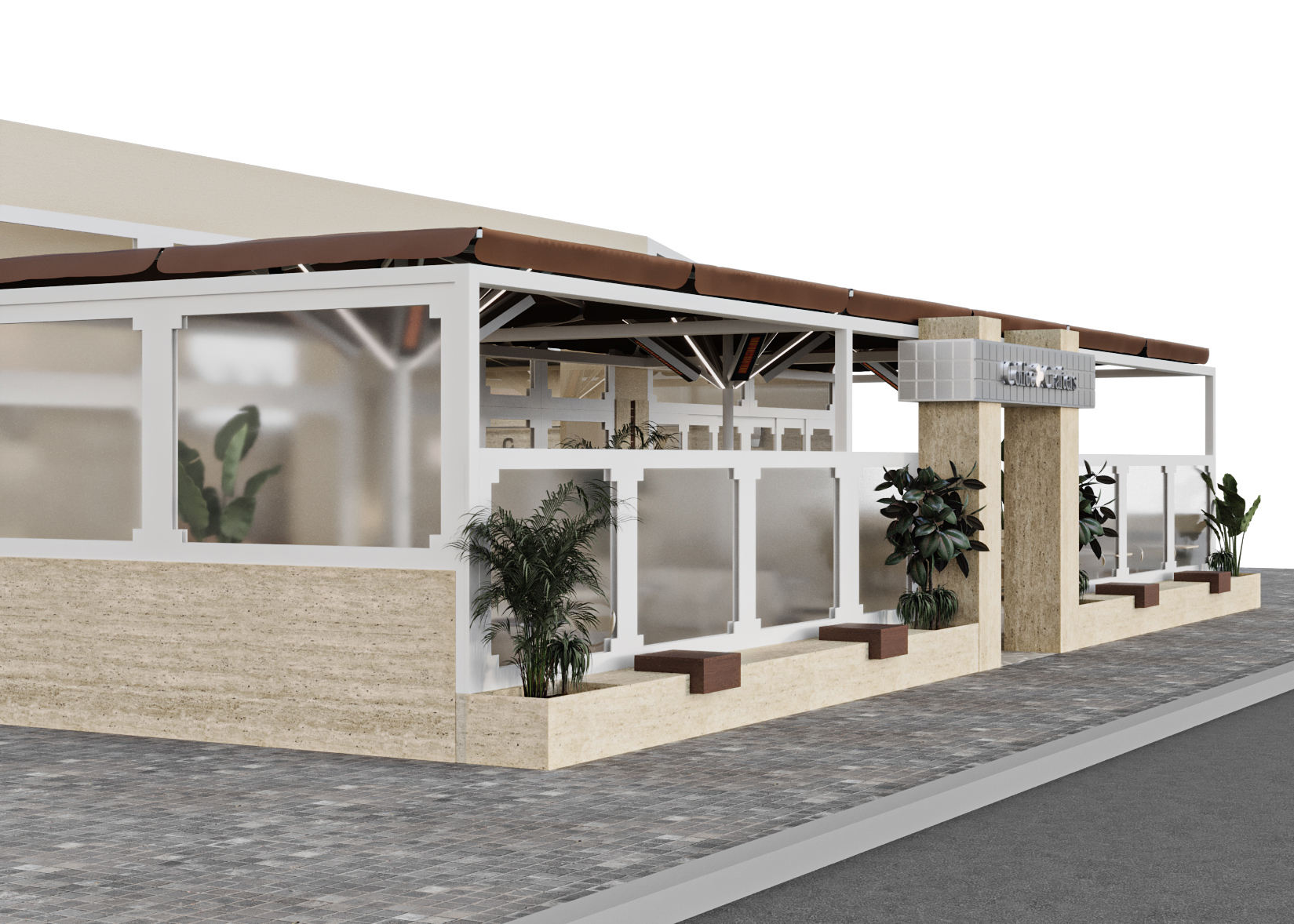 Cephede giriş tagında, bar kaplamasında ve oturma elemanlarında kullanılan kare form, malzeme farklılaşmasına rağmen tasarım dilinin sürekliliğini koruyor. Form tekrarı, mekânın farklı katmanları arasında görsel bir bütünlük kuruyor.